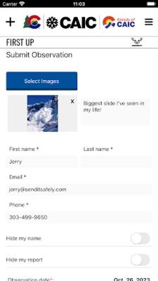 Din medverkan är en ovärderlig tillgång för hela fjällgemenskapen. CAIC tillhandahåller en smidig och direkt kanal för dig att dela med dig av dina egna observationer från fältet. Genom en enkel funktion kan du rapportera iakttagelser direkt till Colorado Avalanche Information Center, vilket bidrar till en mer komplett och dynamisk bild av lavinsituationen för alla användare. Detta aktiva samarbete stärker säkerheten och gör CAIC till en levande, interaktiv resurs för alla som älskar att vistas i Colorados unika vinterlandskap.