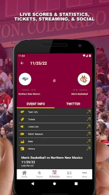 Fördjupa dig i varje ögonblick med live-ljud från matcherna, vilket ger dig känslan av att vara mitt i händelsernas centrum, var du än befinner dig. Utforska arenan och campus med interaktiva kartor som gör det enkelt att hitta rätt på matchdagar. Håll dig informerad med ett dynamiskt nyhetsflöde och sociala uppdateringar som samlar alla viktiga händelser och diskussioner på ett ställe. Dessutom innehåller Colorado Mesa Mavs en omfattande supporterguide som berikar din upplevelse och hjälper dig att få ut det mesta av varje evenemang.
