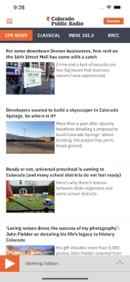 Ta med dig nyheter och musik överallt med en app som erbjuder direktsändningar från CPR News, KRCC, CPR Classical och Indie 102.3. Läs artiklar, lyssna på podcasts och skicka röstmeddelanden. Håll dig informerad med notiser om de senaste nyheterna och händelserna.