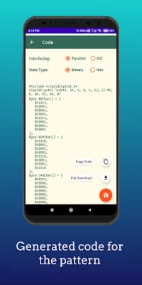 Den verkliga innovationen ligger i den automatiska kodgenereringen. Efter att du enkelt designat ditt mönster omvandlar applikationen din design till färdig, optimerad kod med ett enda klick. Denna kod kan sedan omedelbart kopieras för direkt integration i din valda utvecklingsmiljö eller delas med kollegor och medutvecklare. För ytterligare flexibilitet kan alla dina mönster sparas i både .txt- och .ino-format, vilket garanterar en smidig övergång från design till implementering och arkivering. Detta effektiviserar ditt arbetsflöde och låter dig fokusera på innovation snarare än repetitiv kodning.