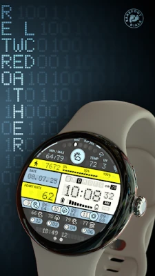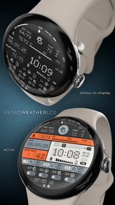 Upplev denna digitala urtavla i retro LCD-stil med omfattande data. Den visar tid, datum, stegräkning, puls och detaljerad väderinformation, inklusive flerdagars- och timmarsförutsägelser. Batteristatus och månfas ingår också. Anpassa med 30 färgkombinationer för en personlig look.
