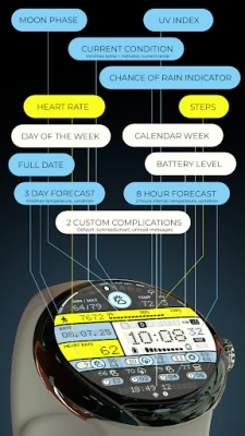 Förhöj din Wear OS-upplevelse med en urtavla designad för elegans och optimal funktionalitet. Detta sofistikerade tillägg till din handledsenhet är noggrant utformat för att erbjuda både stil och omedelbar tillgång till den information du värdesätter högst. Med en intuitiv layout och ett distinkt utseende blir din smartklocka inte bara en tidsvisare, utan en personlig förlängning av din unika estetik. Upplev en sömlös integration som lyfter din vardag, förutsatt att din enhet kör Wear OS 5.0 eller en senare version, vilket säkerställer optimal prestanda och en problemfri interaktion.